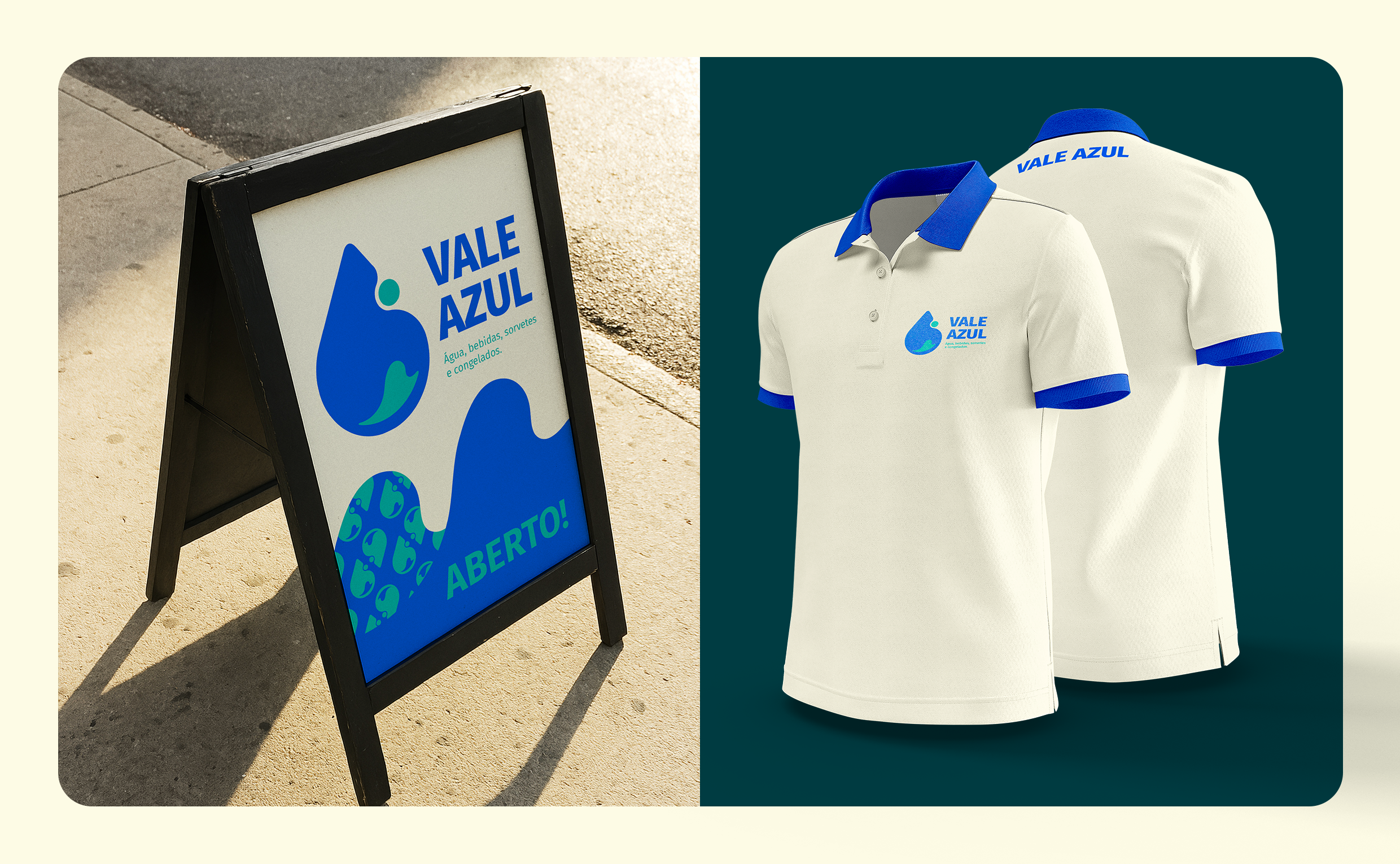 Projeto de identidade visual desenvolvido para uma loja especializada em água, com venda complementar de bebidas, sorvetes, congelados e carvão. O objetivo foi criar um sistema visual claro, confiável e fácil de reconhecer no ponto de venda, reforçando a especialização da marca e sua proximidade com o cotidiano do bairro.